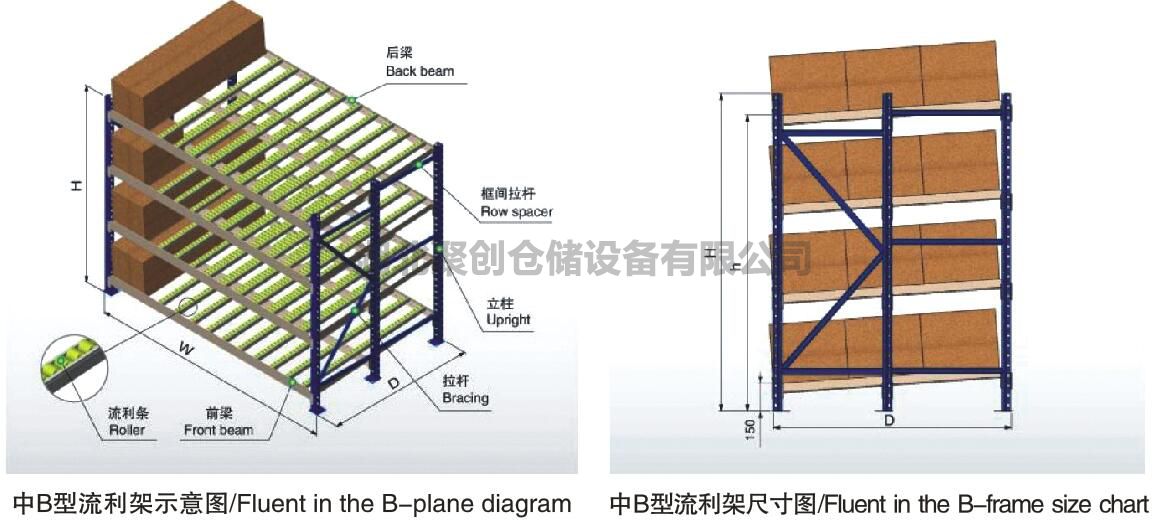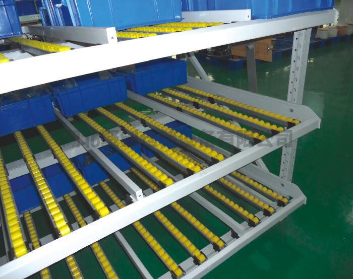 流利式貨架由立柱片、滑移層導(dǎo)軌、隔板等組合而成,滑移層導(dǎo)軌有一定傾斜度,貨物采用標(biāo)準(zhǔn)的周轉(zhuǎn)箱、紙箱存放。進(jìn)料時,周轉(zhuǎn)箱通過滑移層滑入,當(dāng)前面的周轉(zhuǎn)條內(nèi)的貨物取完后,將空箱取出,后面的周轉(zhuǎn)箱自動滑至取貨點,是先進(jìn)先出的存儲方式。流利式貨架可用在物流中心及倉庫的揀貨區(qū),也可用于生產(chǎn)工位旁,存放制品零部件,貨物具有流動性,實現(xiàn)先進(jìn)先出作物料流動管理,與普通的層板貨架相比較,不僅僅只是提供了一個儲物的空間,提高效率,是工廠生產(chǎn)線旁看板管理及物流中心揀選的最佳選擇,并且可以配合電子標(biāo)簽系統(tǒng)使用。
